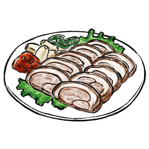 Allergene: b,c Zart geschmorte Schweinebauch, traditionell in einer aromatischen Marinade aus Sojasauce, Ingwer, Knoblauch und Reiswein.