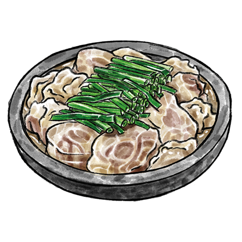 Allergene: a,f Ein scharfer Eintopf mit Rinderdarm, Porree, Sojabohnen und Nudeln. (scharf)