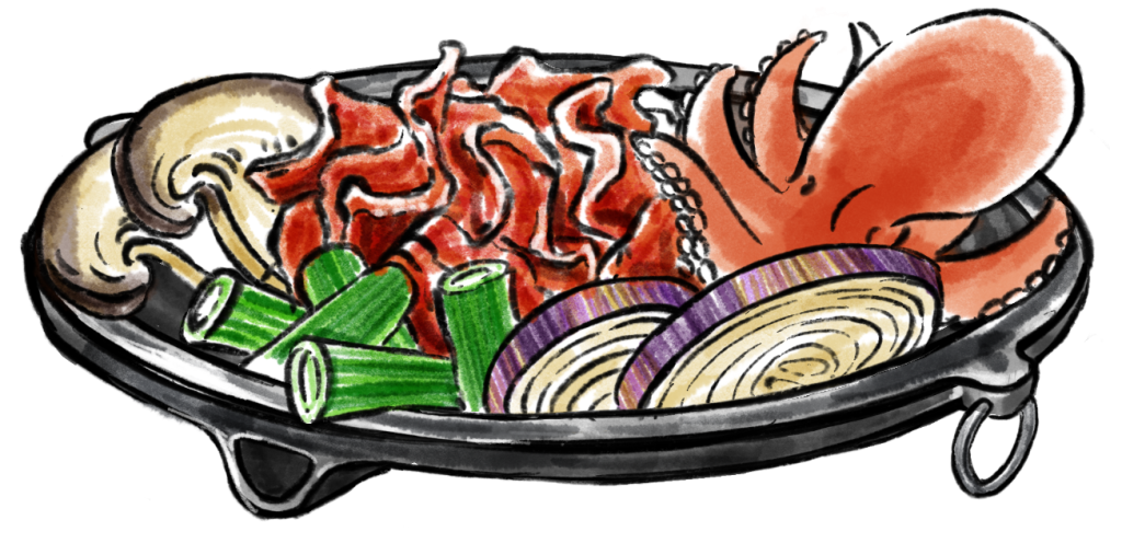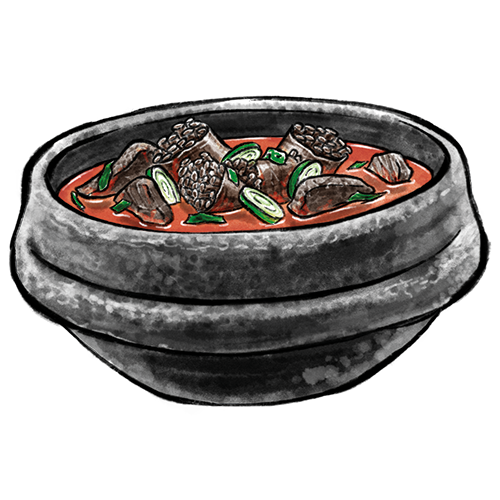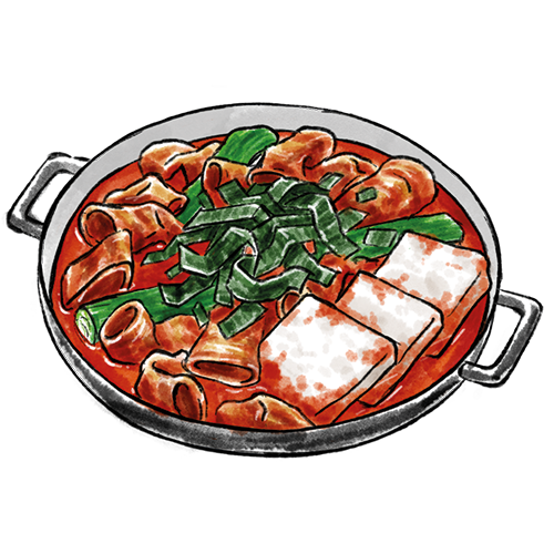 Ein scharfer Eintopf mit koreanische Blutwurst und Innereien.