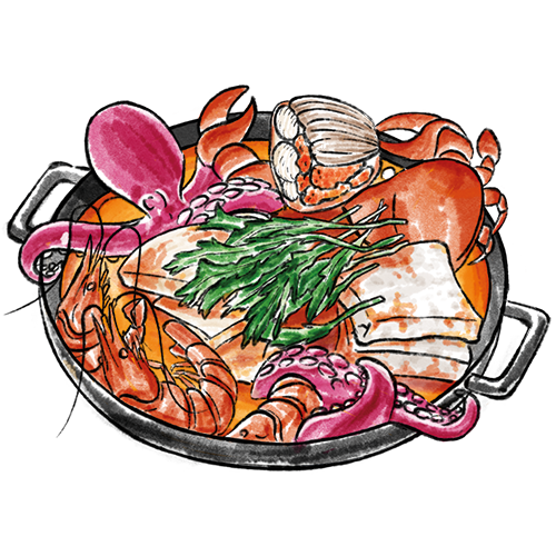 Allergene: b,d,f,m Ein grosser Eintopf mit Fisch, Meeresfrüchten und verschieden Gemüsesorten. (scharf)
