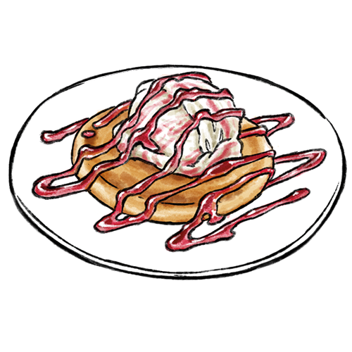 Allergene: b,c Pfannkuchen gefüllt mit Zimt und Zucker. Dazu eine Kugel Eis Ihrer wahl: Erdbeere, Schokolade, Vanille