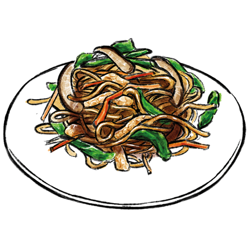 Allergene: a,m Gebratene Glasnudeln mit verschiedene Gemüsesorten und Rindfleisch.