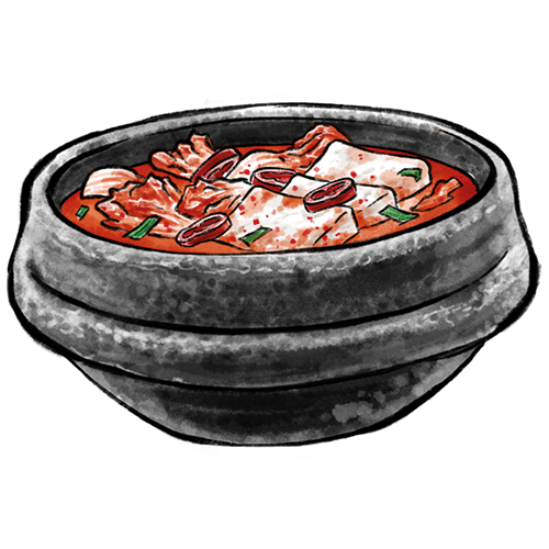 Allergene: f,d Ein scharfer Eintopf mit Kimchi, Tofu und Schweinefleisch.
