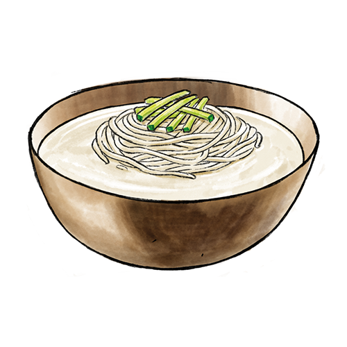 Allergene: a,f Nudeln in einer kalten-cremigen Sojabohnen-Sauce mit GUrken.