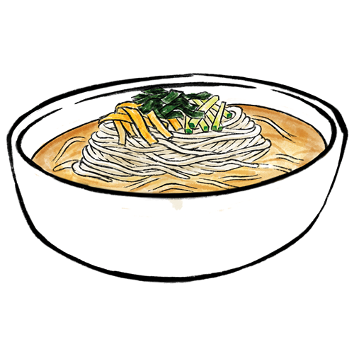 Allergene: a,c Buchweizennudeln in einer kalten Rinderbrühe mit Rettich, Rinderfleisch, Gurken und Ei.