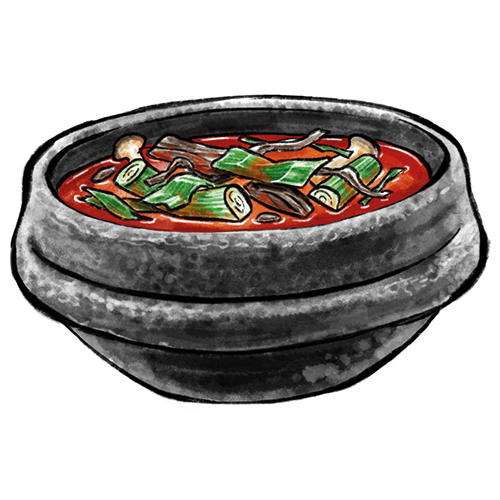 Allergene: a,b,f,m Ein scharfer Eintopf aus Sojabohnen Paste und verschiedene Meeresfrüchten.