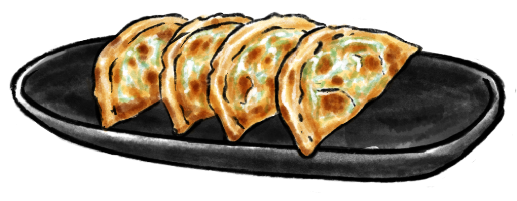 Allergene: a,f 4 frittierte Teigtaschen gefüllt mit verschiedene Gemüsesorten und einer hausgemachten Sojasauce