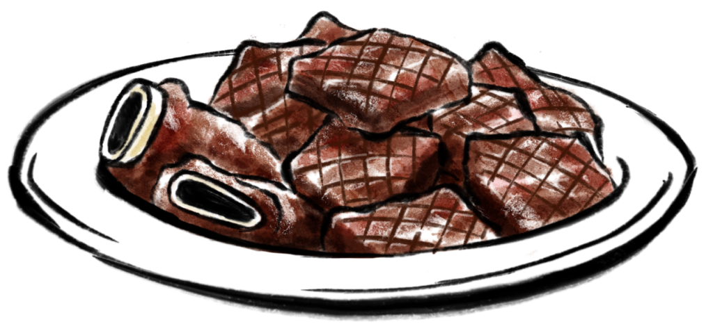 Allergene: a,f Rindrippchen eingelegt in einer fruchtig würzigen Sojasauce. (Ab 2 Personen)