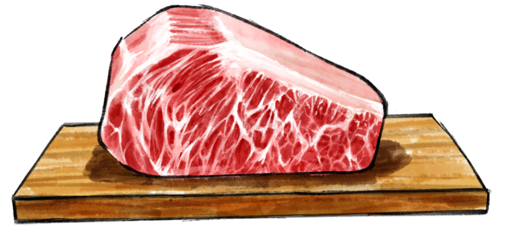 Berühmt für zarte Struktur und edle Marmorierung, wurde es mehrfacher Sieger der Wagyu Olympics und dreifach mit dem „Japan Prime Minister´s Award“ geehrt. (Miyazaki Kobe aus Japan)